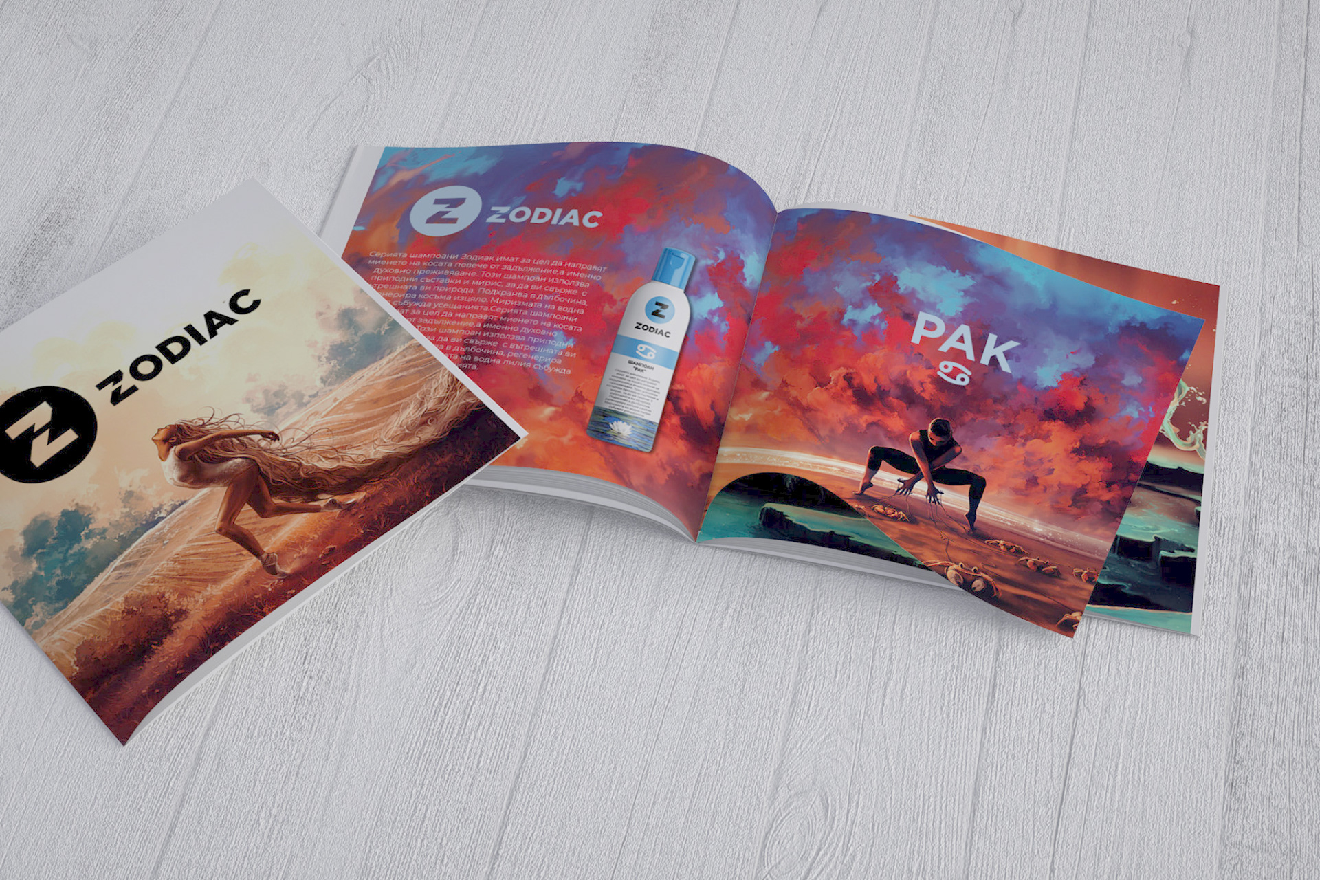 Full branding concept with logo, website, social media for a cosmetics brand centered around zodiacs. The packaging and concept of the product is also my design. The final part of the project is a set of illustrations and a catalog for the products with sniffing patches.